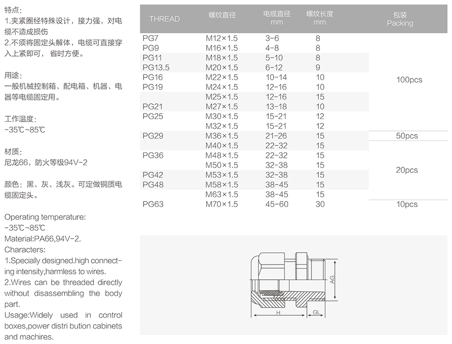 防水电缆固定头(PG型)